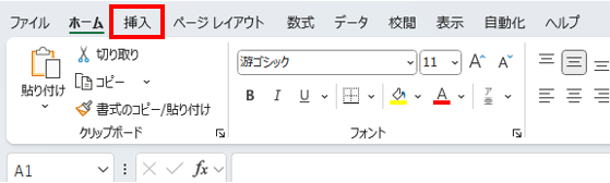 2.「挿入」タブをクリックして表示されたリボン内右端にある