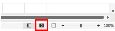 1. Excelの画面右下にある「ページレイアウト」アイコンをクリックする。