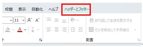 3.「ヘッダーとフッター」をクリックし、画面左側にある「ヘッダー」