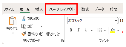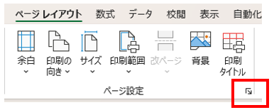 2.「ページ設定」グループの右下にある、小さな矢印アイコンをクリックします。