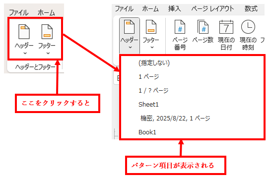 「ヘッダー/フッター」の表示方法には以下の2つの方法があります。