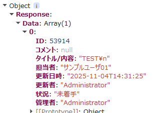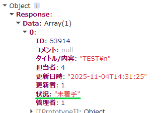 これは状況項目に限らず、ユーザを設定した項目などでも同様で、画面上では「山田太郎」と表示されていても、APIで取得すると「1」「2」といったIDになります。